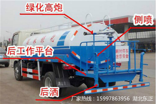 灑水車又稱為噴灑車、多功能灑水車、園林綠化灑水車、水罐車、運水車。灑水車適合于各種路面沖洗,樹木、綠化帶、草坪綠化,道路、廠礦企業(yè)施工建設,高空建筑沖洗。具有灑水、壓塵、高、低位噴灑前帶后平臺高炮,可進行農(nóng)藥噴灑、護欄沖洗、等功能。