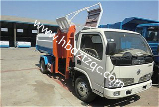 (3)、擺臂式垃圾車專用功能: 擺臂垃圾車的特點(diǎn)是垃圾箱與車體分開,實(shí)現(xiàn)一車與多個(gè)垃圾箱的聯(lián)合使用,循環(huán)運(yùn)輸。貨斗有方形和船形,方形用于地坑式,船形置于地面,充分提高了車輛的運(yùn)輸能力,特別適用于短途運(yùn)輸,如環(huán)衛(wèi)部門對(duì)城鎮(zhèn)垃圾的清理、運(yùn)輸?shù)。為了不使裝載的輕飄貨物在運(yùn)輸中飄落,此車型可設(shè)計(jì)成全封閉結(jié)構(gòu)。垃圾斗可吊上吊下,擺臂一次工作循環(huán)時(shí)間:60S。