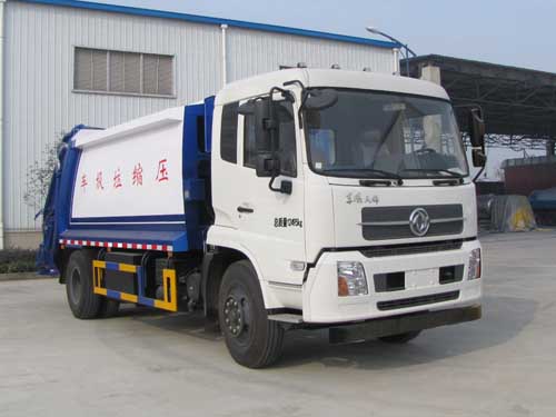 壓縮式垃圾車由汽車二類底盤、密封式壓縮垃圾廂、液壓系統(tǒng)、操作系統(tǒng)組成。整車為全密封型,自動(dòng)壓縮、自行傾倒、壓縮過程中的污水全部進(jìn)入污水箱,較為徹底的解決了垃圾運(yùn)輸過程中的二次污染的問題,關(guān)鍵部件采用進(jìn)口部件,具有壓力大、密封性好、操作方便、安全等優(yōu)點(diǎn)。可選配后掛桶翻轉(zhuǎn)機(jī)構(gòu)或垃圾斗翻轉(zhuǎn)機(jī)構(gòu)以及后翻轉(zhuǎn)式幾種車型;是用于城鎮(zhèn)袋裝、桶裝、散裝生活垃圾物的收集、運(yùn)輸、卸料作業(yè)的專用車輛。垃圾被車載垃圾推進(jìn)器又稱負(fù)壓機(jī)構(gòu)推壓入車箱,從而使垃圾較高密度、較均勻地分布在車箱內(nèi),直至裝滿為止;該垃圾車的收運(yùn)方式是目前世界上廣泛采用的垃圾收運(yùn)方式,其專用裝置的功能均以汽車發(fā)動(dòng)機(jī)為動(dòng)力,通過液壓機(jī)構(gòu)手動(dòng)或電控操作來實(shí)現(xiàn)。壓縮式垃圾車的箱體、裝填器又稱斗體及污水箱均采用優(yōu)質(zhì)炭鋼板全密封焊接結(jié)構(gòu),具有強(qiáng)度高、重量輕、不產(chǎn)生二次污染等優(yōu)點(diǎn)。
