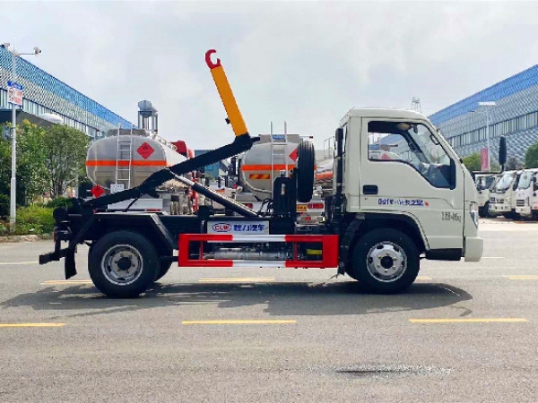 勾臂垃圾車【車廂可卸式垃圾車】車體和垃圾箱可完全分離,由液壓系統(tǒng)來完成收箱/放箱,在平日里可將車載垃圾箱放置到各個垃圾收集點,待垃圾收集滿后,該車可直接開赴收集點,通過液壓系統(tǒng)的操控,可將垃圾車后座上加裝的勾臂放下,掛住站內(nèi)箱體前端的連接點,將垃圾箱拉**車體的后座上,此時即可開動車輛,將垃圾運送垃圾處理站內(nèi),進行自卸式傾倒,優(yōu)點就是可一車配多斗,一輛車就可以維持?jǐn)?shù)個垃圾收集站的運轉(zhuǎn),效率高,且箱體為密封式設(shè)計,不會造成二次污染。