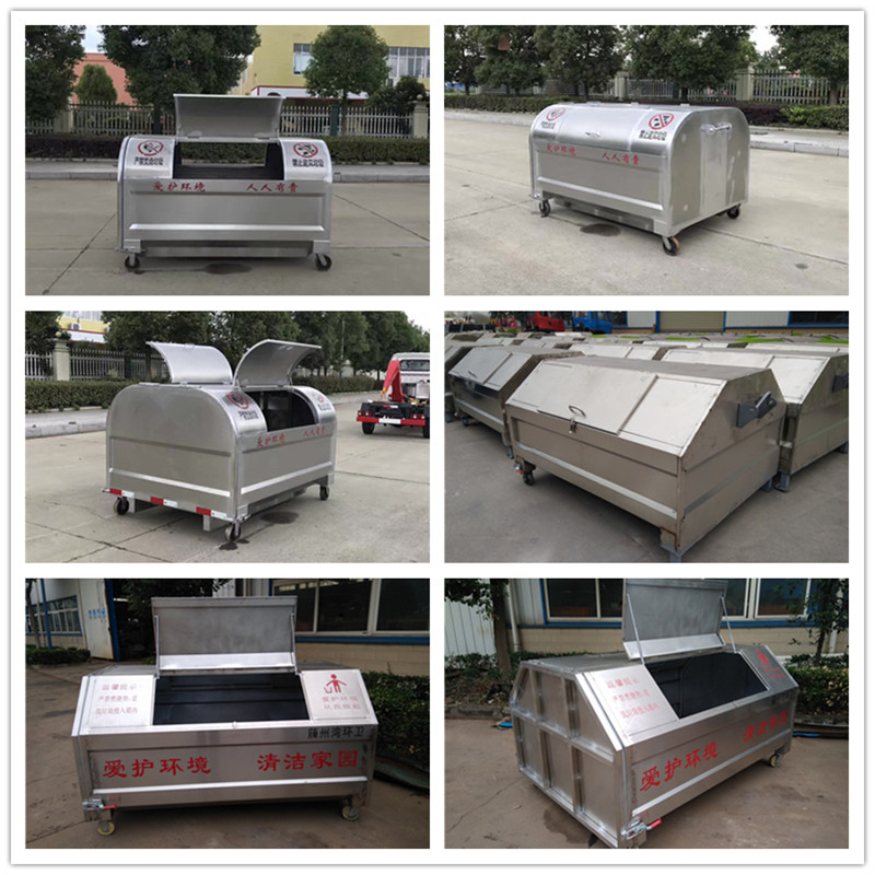 勾臂垃圾車配套移動垃圾箱外形以上梯形下長方形、上弧形下長方形、上弧形下弧形、長方形為主,箱體兩邊各帶一對或二對垃圾投入口或頂部開口,帶蓋式箱體能夠避免風(fēng)將輕質(zhì)垃圾(塑料袋,廢紙等)吹散和防止雨水進(jìn)入箱內(nèi);箱體底部帶一對鐵輪方便吊上卸下時垃圾箱的移動,箱體后部可開啟【帶鎖緊機(jī)構(gòu),配備密封條】。勾臂垃圾箱外觀形狀、大小容積可根據(jù)用戶需求定制加工。